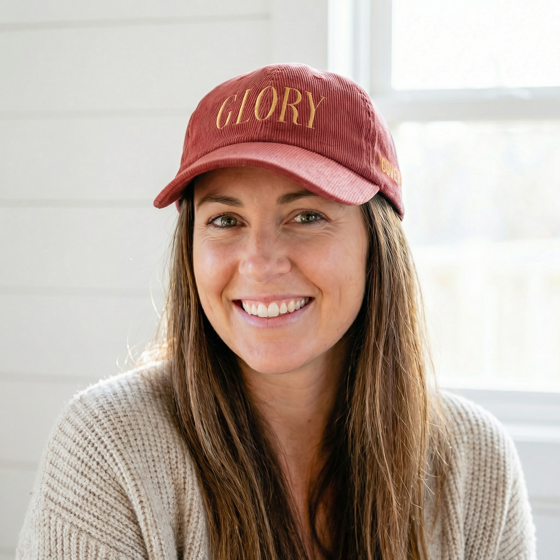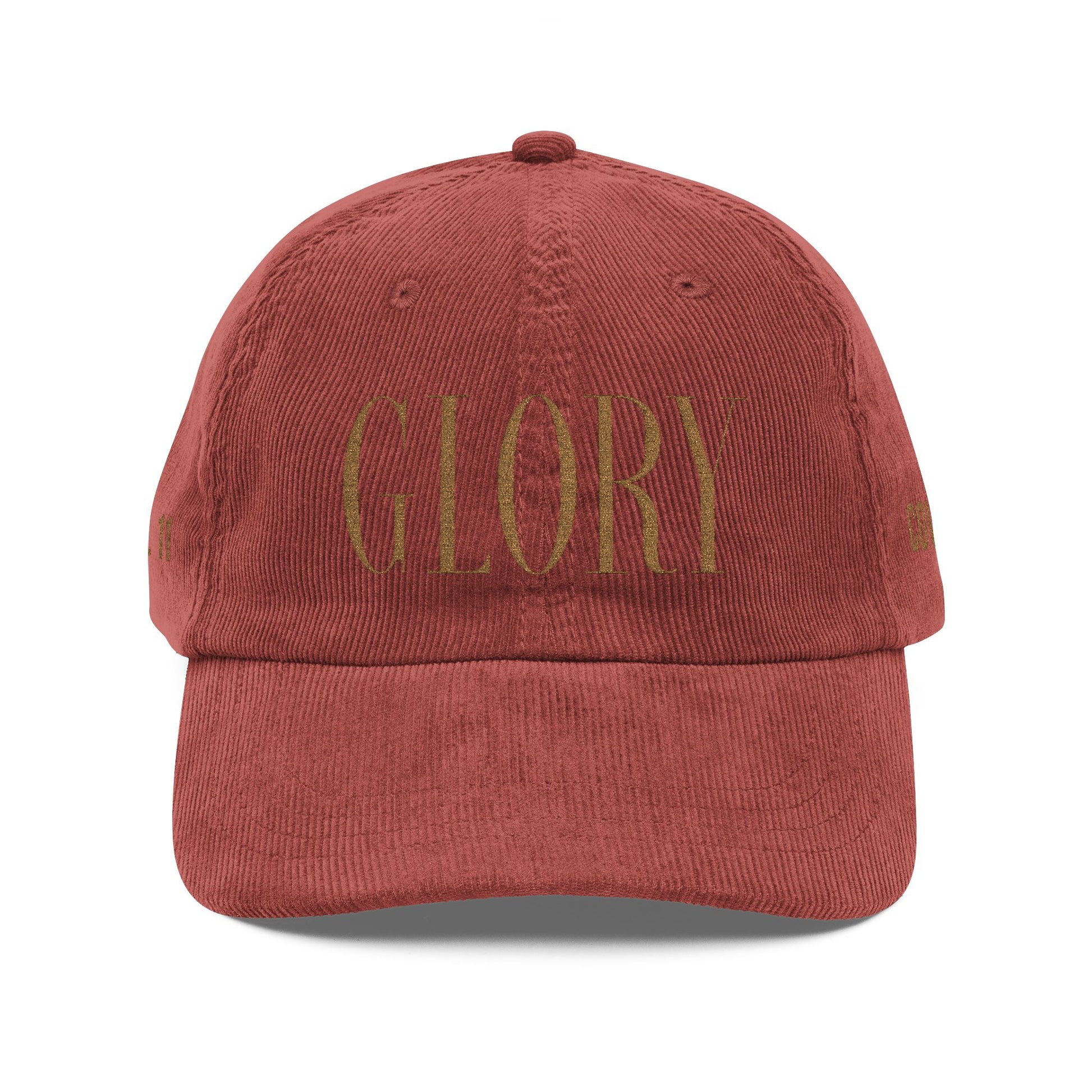 GLORY 1 Corinthians 11 Corduroy Hat (Burgundy) | Old Gold Embroidery