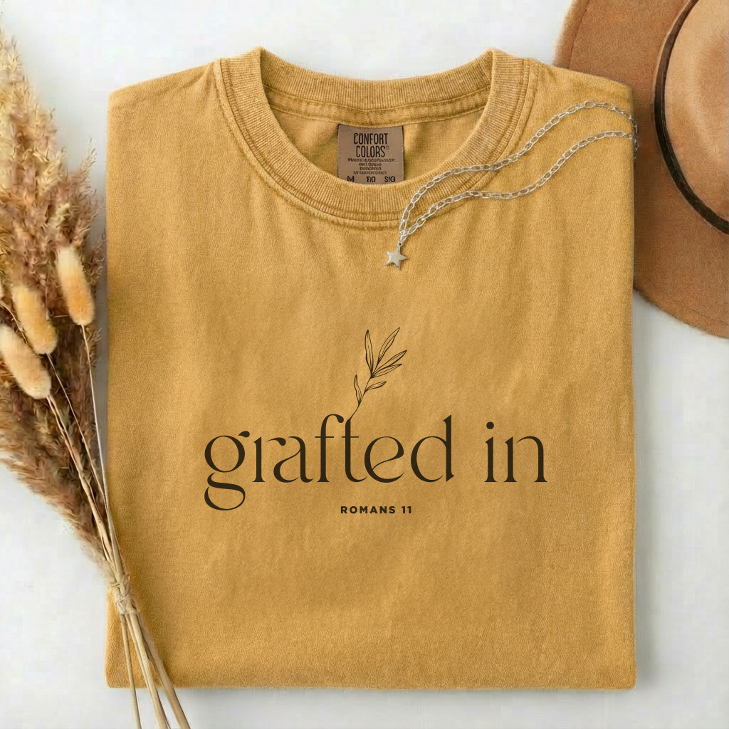 This Grafted In graphic tee is a beautiful reminder of God’s redemptive story—how those who were once far off have been lovingly grafted in to Israel through Messiah Yeshua. Inspired by Romans 11, this design speaks identity, belonging, and covenant, all on an effortlessly wearable everyday tee.